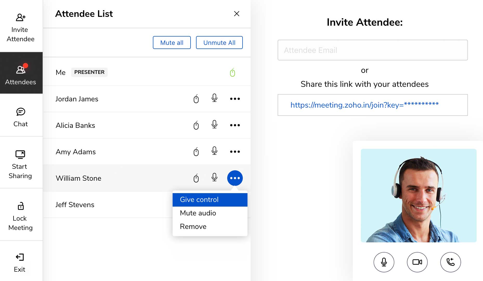 C’est génial, n’est-ce pas ? En plus de cela, vous bénéficiez de toutes les fonctionnalités de communication Web standard comme le partage d’écran, les appels audio, la vidéoconférence et la collaboration à des projets. Quant à la limite, Zoho Meeting peut accueillir jusqu’à 100 participants en même temps, ce qui est loin de Zoom, mais si vous avez une petite équipe, alors c’est plutôt bien.