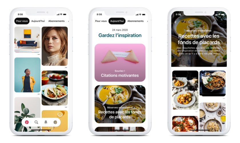 Après que la majorité de la population mondiale en confinement, il n’est pas étonnant que les gens se ruent vers les réseaux sociaux pour occuper leur journée et trouver de l’inspiration sur ce qu’il est possible de faire. Après avoir battu des records, Pinterest lance plus tôt que prévu un nouvel outil d’inspiration quotidienne. D’ores et déjà lancé aux États-Unis et au Royaume-Uni, le nouvel onglet Pinterest « Aujourd’hui » arrive en France.