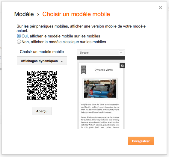 Note : Si vous utilisez déjà l’option sur la version de bureau, et que vous avez le modèle mobile par défaut de sélectionné, vous n’aurez pas à faire des changements.