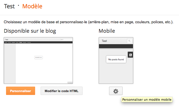 Tous les blogueurs qui le souhaitent peuvent mettre en place l’option “Affichages dynamiques” sur leurs blogs en allant dans l’onglet “Modèle”, puis en cliquant sur l’icône représentant un engrenage, permettant de vous rendre dans les paramètres sous l’aperçu du modèle “Mobile”.