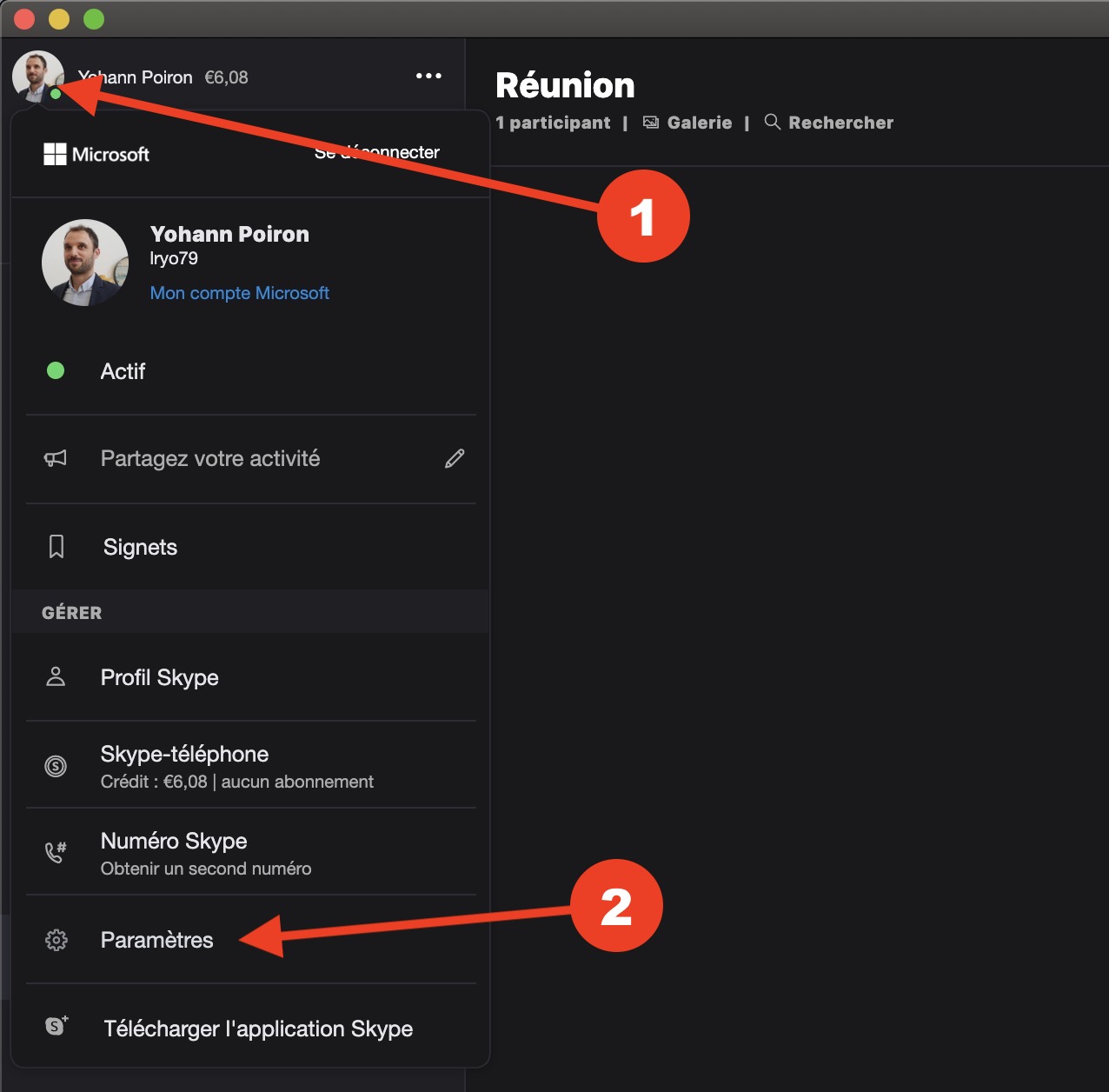 Vous pouvez définir un effet d’arrière-plan par défaut pour tous vos appels vidéo Skype. Commencez par cliquer sur la photo de votre profil dans la fenêtre Skype et sélectionnez « Paramètres ».