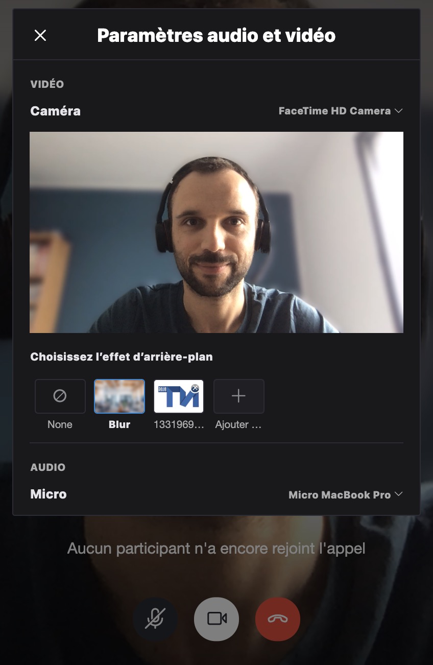 Sélectionnez l’option « Blur » (le terme anglais de « Flou » qui n’a pas été traduit), et l’arrière-plan de l’appel que vous passez sera automatiquement flou.