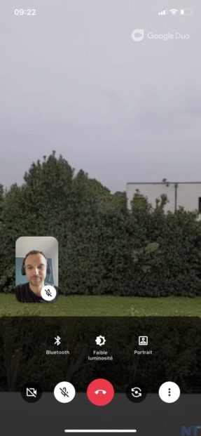 Seuls quelques paramètres sont disponibles lors d’un appel vidéo. Vous pouvez vous mettre en sourdine ou passer à la caméra arrière du téléphone. En tapant sur les trois points verticaux, vous obtenez des options supplémentaires comme le mode « Portrait » et le mode « Faible luminosité ». Ce dernier est particulièrement utile si l’éclairage de l’endroit où vous vous trouvez n’est pas excellent, et permet d’obtenir une vidéo très claire et lumineuse.
