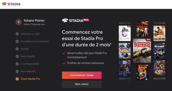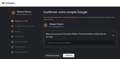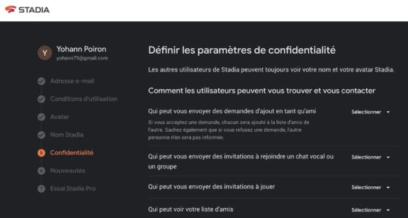 - Faites dérouler le scénario d’inscription : choix de l’avatar, du nom Stadia, des informations sur la confidentialité, etc.