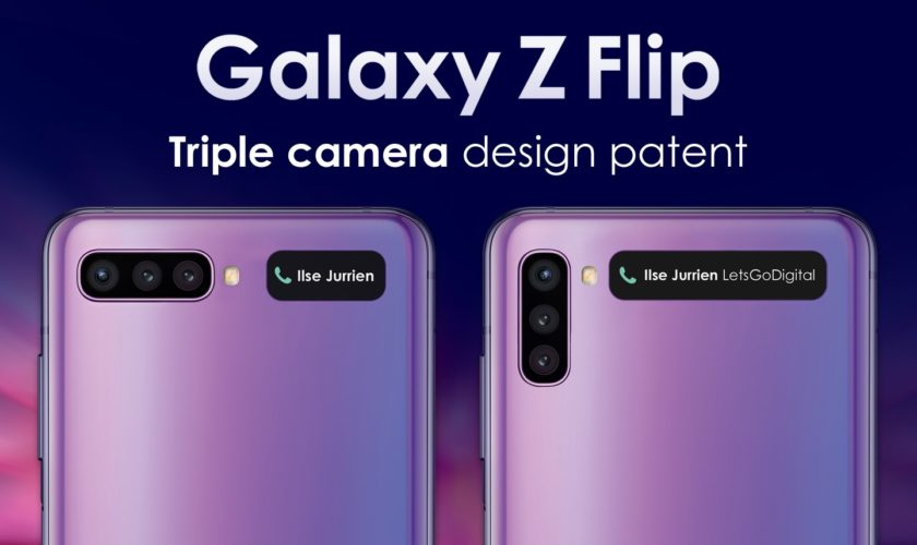 L’extérieur aussi est à peu près identique, mais comme vous pouvez le voir dans les rendus du brevet, le Galaxy Z Flip 2 pourrait comporter une triple caméra dans une orientation verticale ou horizontale.