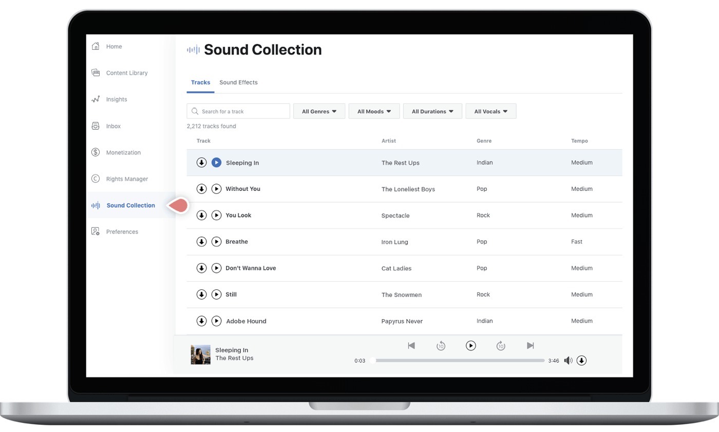 Le blog souligne également que les utilisateurs peuvent utiliser la Facebook Sound Collection pour leurs contenus. Ces sons sont mis à la disposition des utilisateurs gratuitement et sans limitation, de sorte qu’ils peuvent être utilisés en toute sécurité sans avoir à se soucier des problèmes de licence.