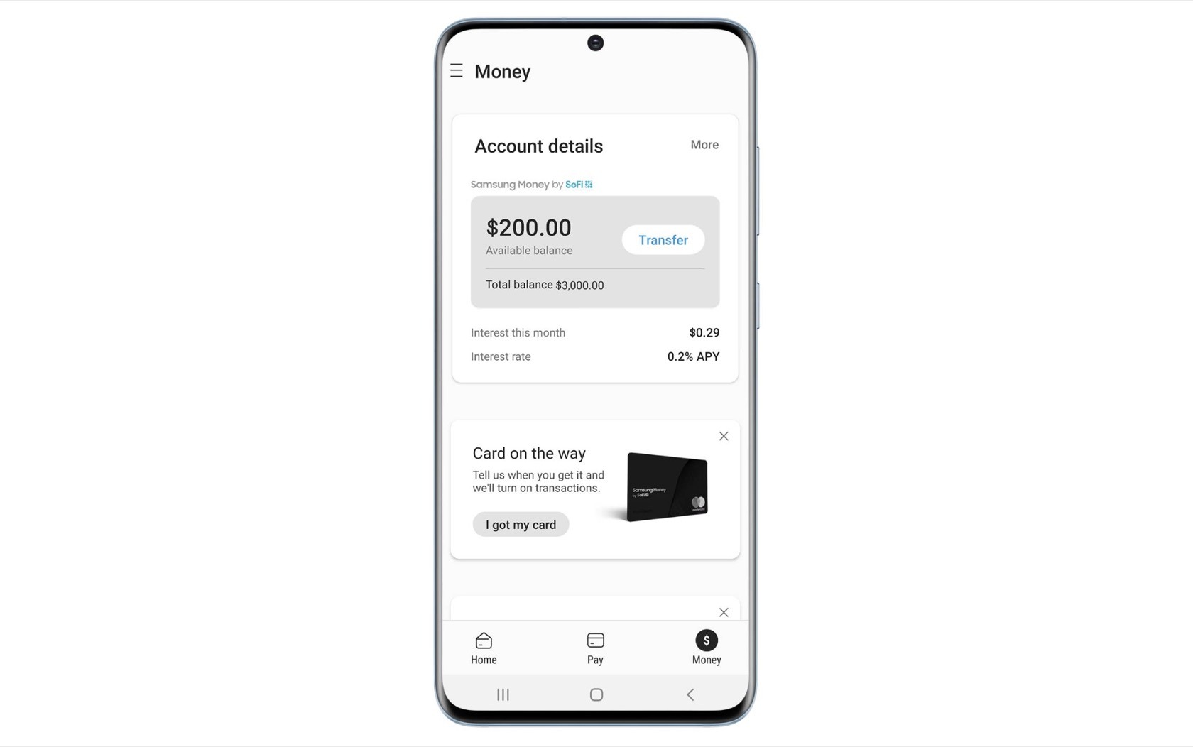 Samsung a lancé Samsung Money by SoFi, une carte de débit liée au smartphone conçue pour fonctionner avec Samsung Pay. Cette nouvelle élégante carte noire s’appuie sur les paiements sur mobile proposés par Samsung Pay. Elle sera dotée d’outils de gestion financière — y compris le contrôle physique de la carte — et ne nécessitera aucuns frais de compte mensuel ou annuel (bien que les petits caractères se réservent le droit de modifier cela à l’avenir).