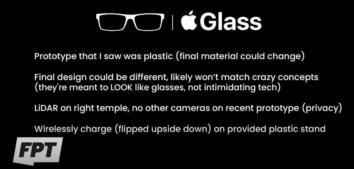 Le prototype actuel d’Apple Glass est en plastique, et l’appareil peut se recharger sans fil sur un support propriétaire. Le design final pourrait être différent, a déclaré le divulgateur, mais ils ressembleront toujours à des lunettes plutôt qu’à une « technologie intimidante » qui aurait l’air peu naturelle sur votre visage. Les lunettes seront dotées d’un capteur LiDAR, et les ingénieurs d’Apple utiliseront les données LiDAR de l’iPad et de l’iPhone pour perfectionner la technologie des Apple Glass.