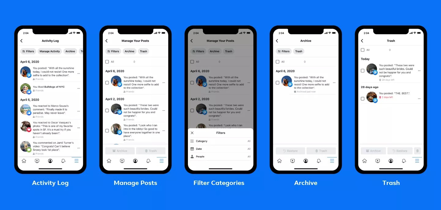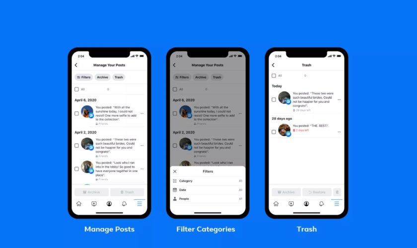 Facebook lance une nouvelle fonctionnalité intitulée « Gérer l’activité » qui permet aux utilisateurs de supprimer leurs anciens messages. Elle peut être utilisée pour supprimer des messages individuels ou en masse, et Facebook indique qu’elle offrira des options de filtrage pour aider à trouver les messages contenant des personnes spécifiques ou dans une certaine période. Cette fonction sera d’abord proposée aux applications mobiles de Facebook.