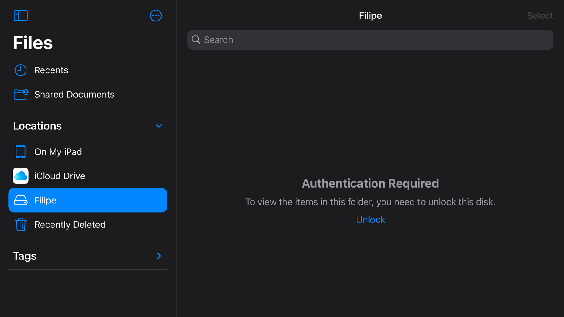 Il suffit donc de le connecter au iDevice qui tourne sous iOS 14. Dès lors, le disque apparaît dans la barre latérale de l’application Fichiers. Vous êtes invité à entrer le mot de passe pour lire les données chiffrées et c’est à peu près tout.
