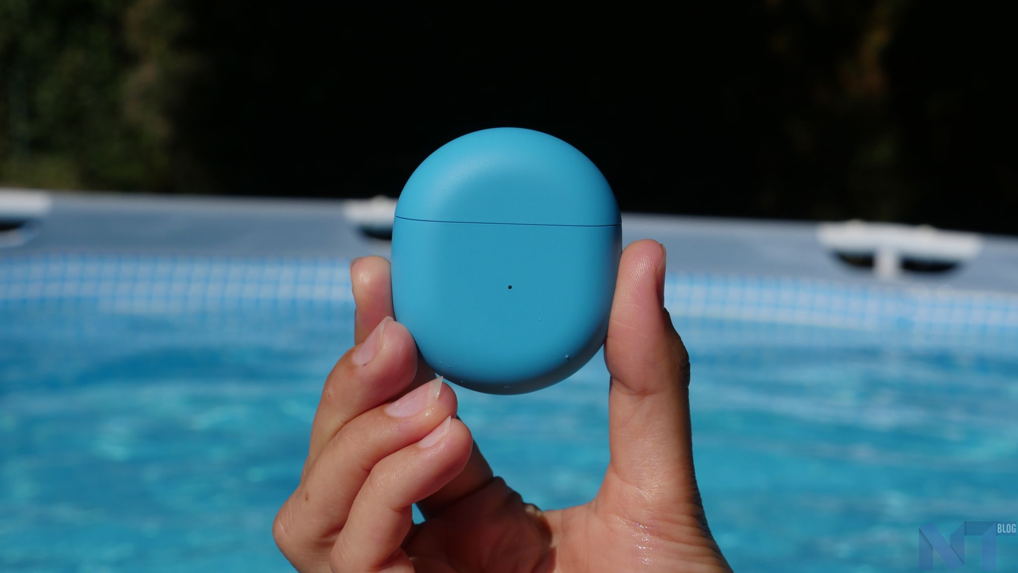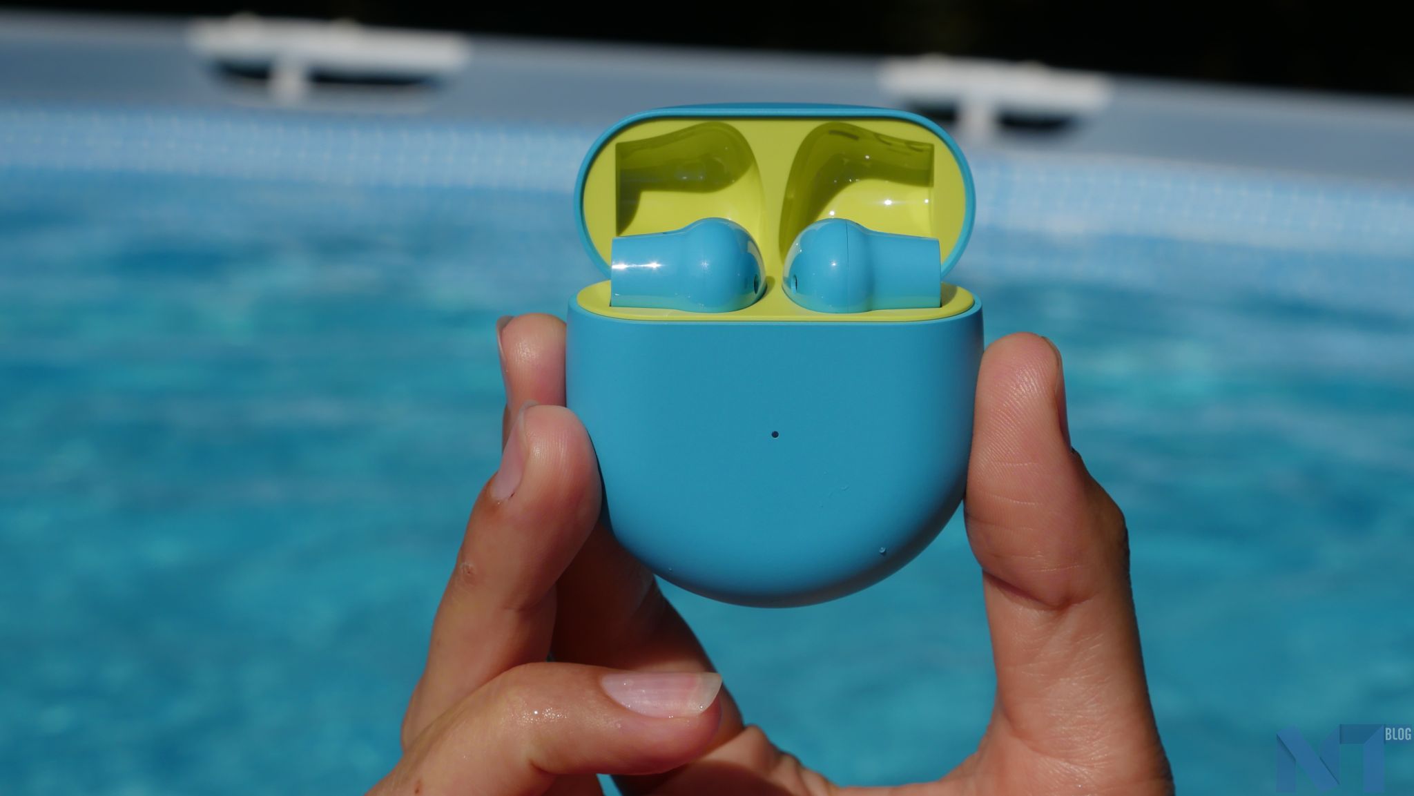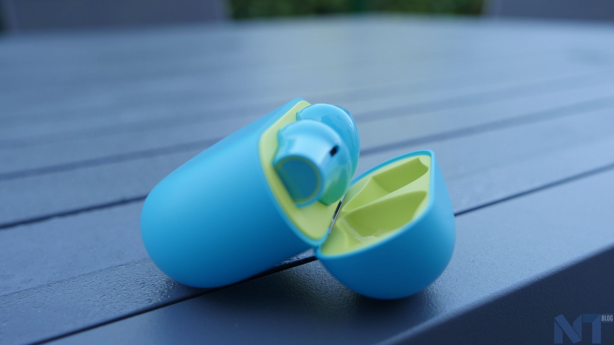 Les écouteurs OnePlus Buds Nord Blue que j’ai reçu et que vous voyez en photos dans cet article sont les plus attrayants des trois couleurs proposées. Il s’agit d’un bleu turquoise assez flashy. Les écouteurs et le boîtier sont assortis, tandis que l’intérieur du boîtier est de couleur jaune teintée de vert. La palette de couleurs est ludique et amusante.