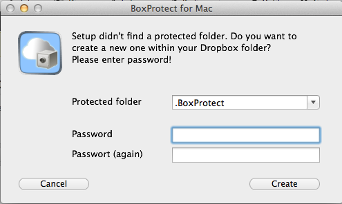 Ensuite, vous serez invité à configurer un dossier protégé au sein de Dropbox. Bien sûr, BoxProtect ne le trouvera pas au premier abord puisque c’est la première fois que vous utilisez le service.
