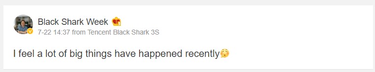 Le PDG de Black Shark, Luo Yuzhou, est récemment allé sur Weibo pour faire le point sur la situation. Il a déclaré : « Je pense que beaucoup de choses importantes se sont produites récemment », mais ce n’est pas le sujet de cette déclaration. Si vous regardez de plus près la capture d’écran de la publication de Weibo ci-dessous, vous verrez que la déclaration a été publiée à partir d’un appareil appelé « Tencent Black Shark 3S ».