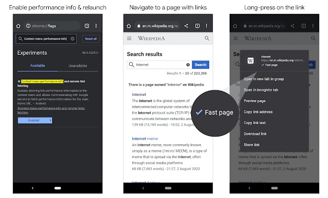 Avec la version bêta de Chrome 85 sur mobile, le navigateur ajoutera un badge « Page rapide » aux informations d’un lien lorsque vous appuyez longuement sur un lien menant à une certaine page Web. Ce badge indique que la page a toujours respecté, voire dépassé, les signaux fixés par Google dans ses directives « Core Web Vitals », comme le temps de chargement de la page, la réactivité et la stabilité du contenu pendant le chargement.
