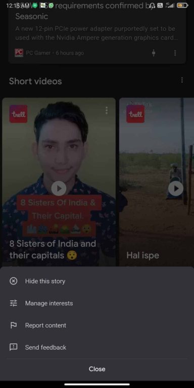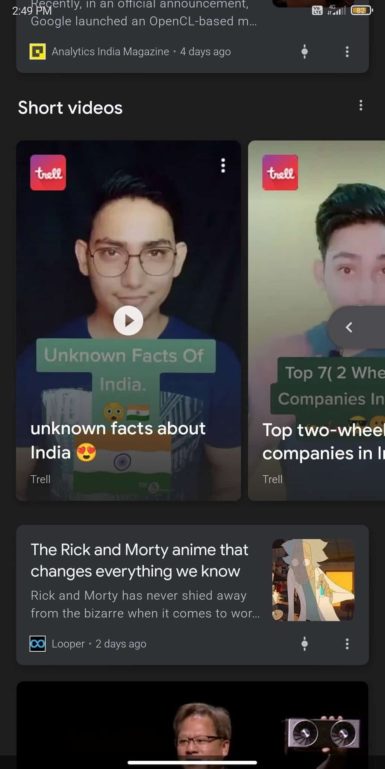 Google expérimente la possibilité d’intégrer une section « Vidéos courtes » à la section « Découvrir » de l’application Google. Le géant du logiciel s’approvisionne actuellement en contenu auprès de Trell, une plateforme indienne de vidéos courtes analogue à TikTok, et du laboratoire de Google à Tanger, dans le Area 120 lab.