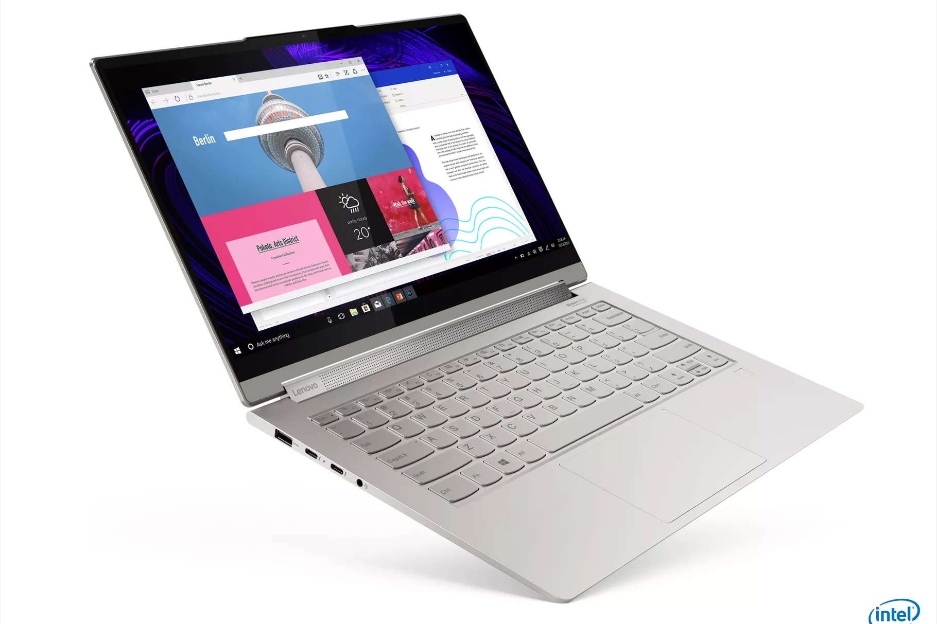 À l’intérieur, le Yoga 9i de 14 pouces et le Yoga Slim 9i sont tous deux équipés des nouveaux processeurs Tiger Lake d’Intel et de la nouvelle norme de connexion Thunderbolt 4, qui, selon Lenovo, permettra des vitesses de transfert « super rapides ».