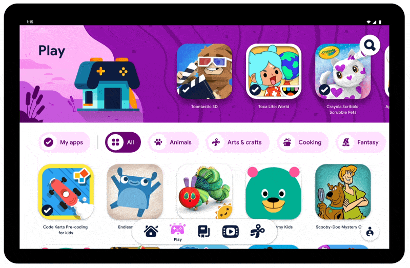 Google a présenté la nouvelle application sur son blog. Kids Space est essentiellement un écran d’accueil de remplacement, présentant une sélection d’applications, de jeux et d’autres distractions choisies par Google pour être adaptées à l’âge des utilisateurs. Le contenu est divisé en quatre sections, « Play », « Read », « Watch » et « Make », qui présentent des jeux, des livres et des bandes dessinées, des vidéos et des objets d’art et d’artisanat. Les enfants peuvent créer leur propre avatar et choisir parmi une poignée de centres d’intérêt pour personnaliser le contenu affiché.