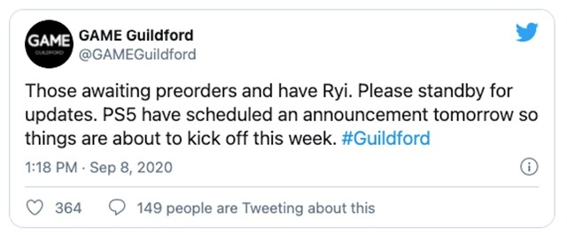 Le revendeur l’a mentionné dans un tweet s’adressant aux personnes qui ont posé des questions sur les précommandes de la PS5. « Ceux qui attendent des précommandes et qui ont Ryi. Veuillez patienter pour les mises à jour. PS5 a prévu une annonce demain, donc les choses vont commencer cette semaine », peut-on lire dans le tweet qui a depuis été retiré.