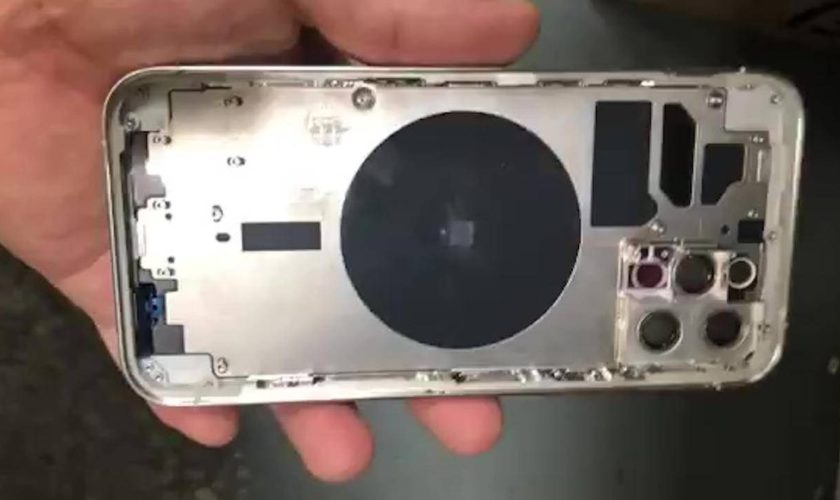 Le court clip vidéo attire également l’attention sur une découpe non encore identifiée, qui pourrait être celle d’un Smart Connector ou de l’antenne 5 G. Cependant, plus révélateur, est le déplacement du plateau SIM vers le bas de l’appareil, le long des bords désormais plus plats. Sans le gros bloc caméra, on aurait pu facilement le confondre avec un iPhone 5 plus ancien.