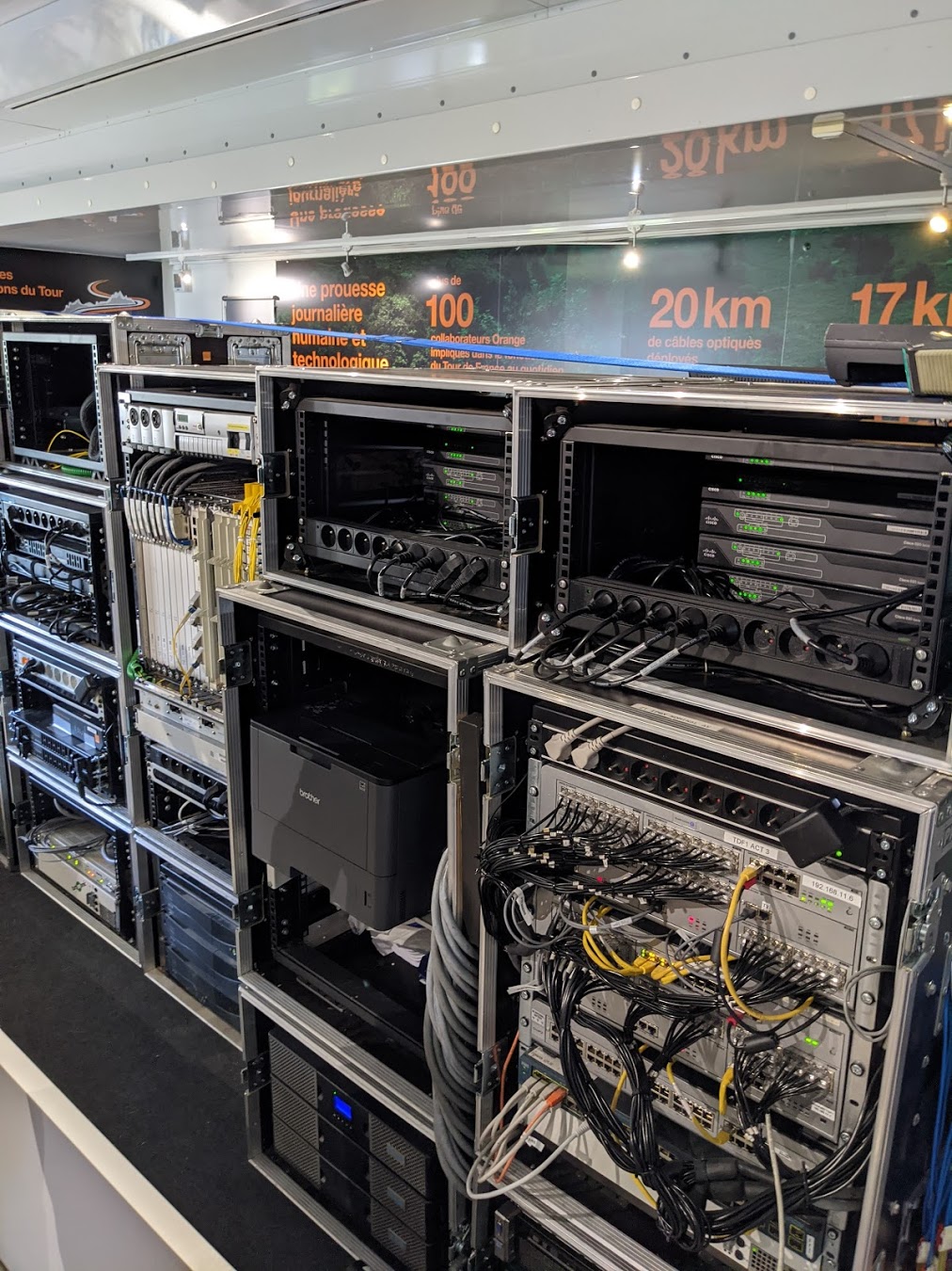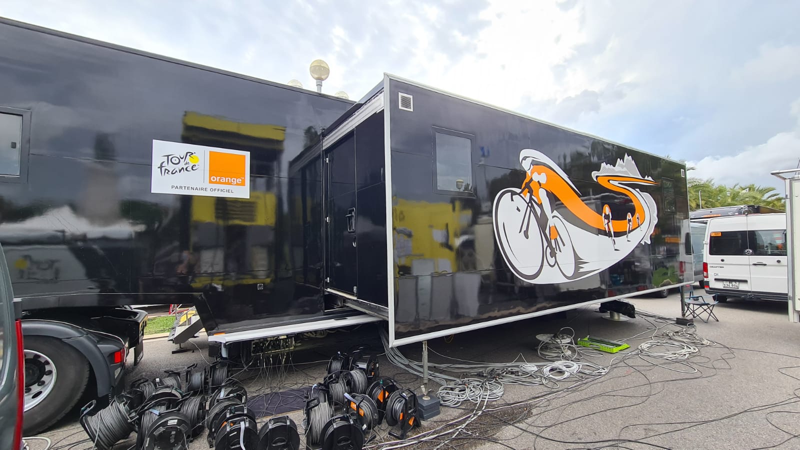 Orange est l’unique opérateur qui emmène la fibre optique sur le Tour de France, et doit donc répondre aux besoins de nombreuses chaînes télé du monde entier, des radios, des journalistes et consort.
