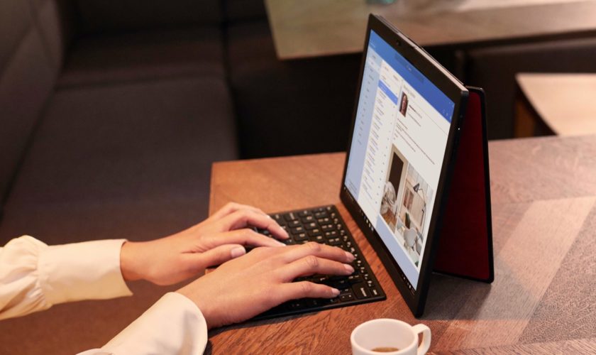 Ainsi, le bord en silicone autour de l’écran pliable a été amélioré, Lenovo affirmant qu’il est désormais plus résistant. L’angle de la béquille a également été ajusté, et la boucle du stylet se trouve désormais sur l’accessoire du clavier, et non plus sur le capot. Le revêtement en cuir à l’arrière est désormais plus résistant. Côté logiciel, les personnalisations de Lenovo pour Windows 10 ont été améliorées. Selon la société, le changement de mode s’opère désormais de manière plus efficace lorsque l’on passe d’une présentation à l’autre et d’une orientation à l’autre. C’est notamment le cas lorsque vous placez le clavier Bluetooth en option, auquel cas le pli reconnaît qu’il a été fixé et ajuste son utilisation de l’écran en conséquence.