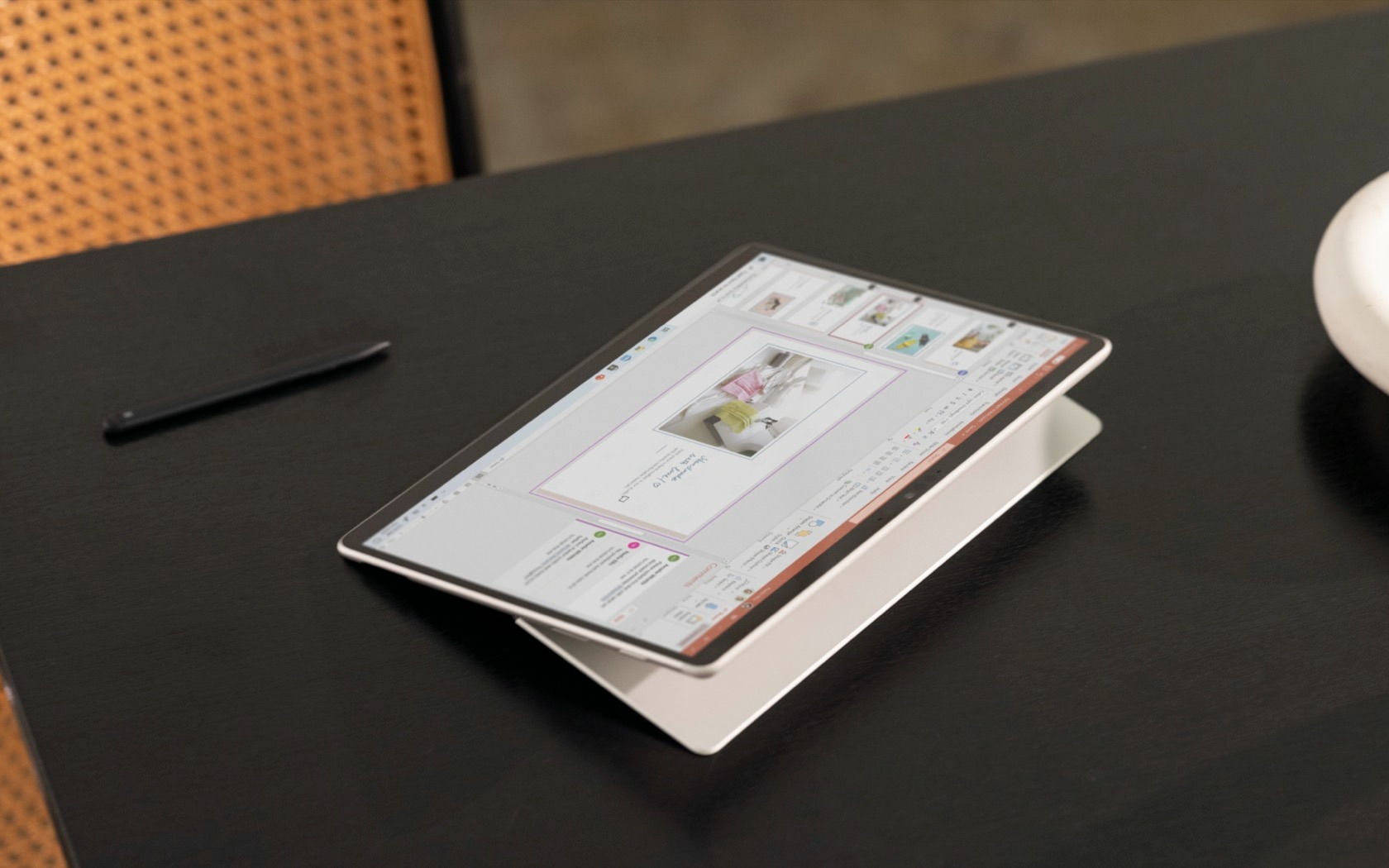 Elle utilise également une puce graphique Adreno 690, pour une performance visuelle accrue. L’affichage reste un écran tactile PixelSense de 13 pouces, au format 3:2 avec une résolution de 2 880 x 1 920 pixels. Il est logé dans un boîtier en aluminium anodisé, avec un système thermique en composite de carbone pour un refroidissement sans ventilateur.