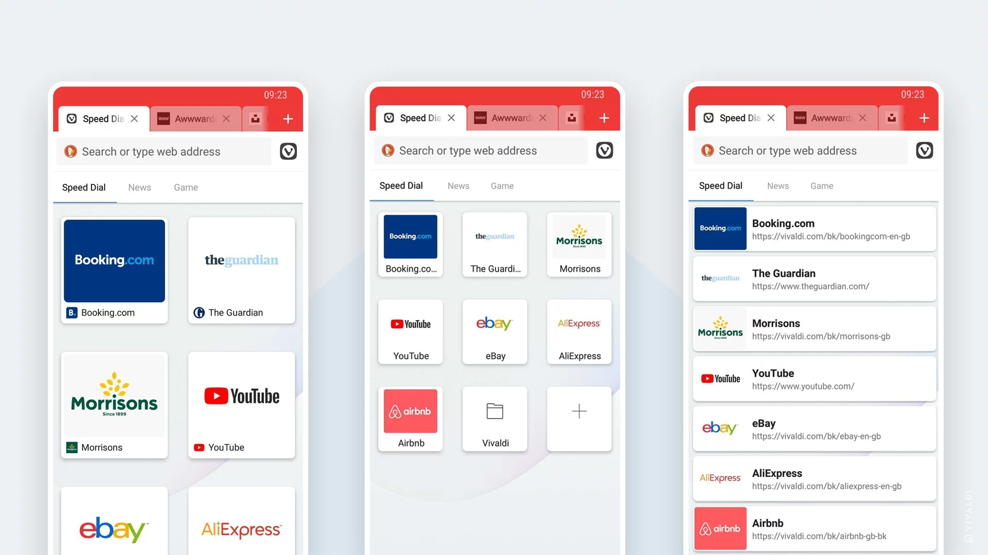 Vivaldi met également à jour son application Android. Le principal changement apporté par cette mise à jour concerne la présentation de Speed Dial. Les onglets Speed Dial affichent désormais les favoris de la page ainsi que le titre. Vous pouvez également choisir d’afficher un grand Speed Dial, un plus petit ou une liste. La mise en page préférée peut être modifiée dans « Paramètres -> Page d’accueil ».