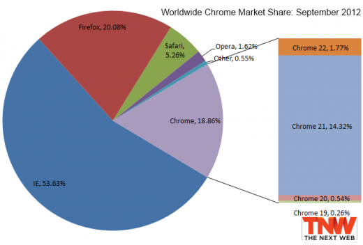 Avec 18,86%, Chrome est encore juste derrière Firefox. Je m’attends à voir l’arrivée de Chrome 22 comme un boost pour récupérer des parts de marché, mais je ne suis pas pas certain que cela se fasse avant Chrome 23…