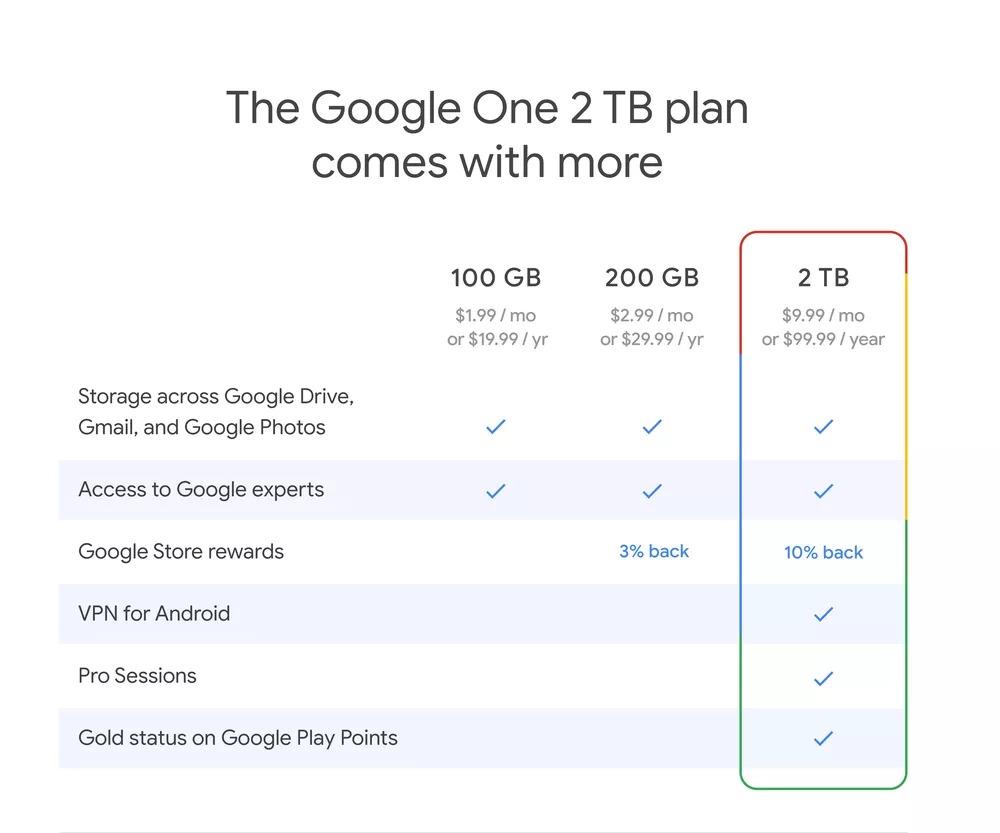 Le hic, c’est que cette fonctionnalité n’est pas disponible pour tous les clients de Google One. Vous devez être sur le niveau 2 To, qui coûte 9,99 € par mois ou 99,99 € par an, ou plus. En plus du service VPN, les clients de ce niveau bénéficieront de l’assistance des experts Google pour la nouvelle fonctionnalité. Malheureusement, cette offre n’est disponible qu’aux États-Unis, au Canada, en Australie, en Allemagne et au Royaume-Uni.