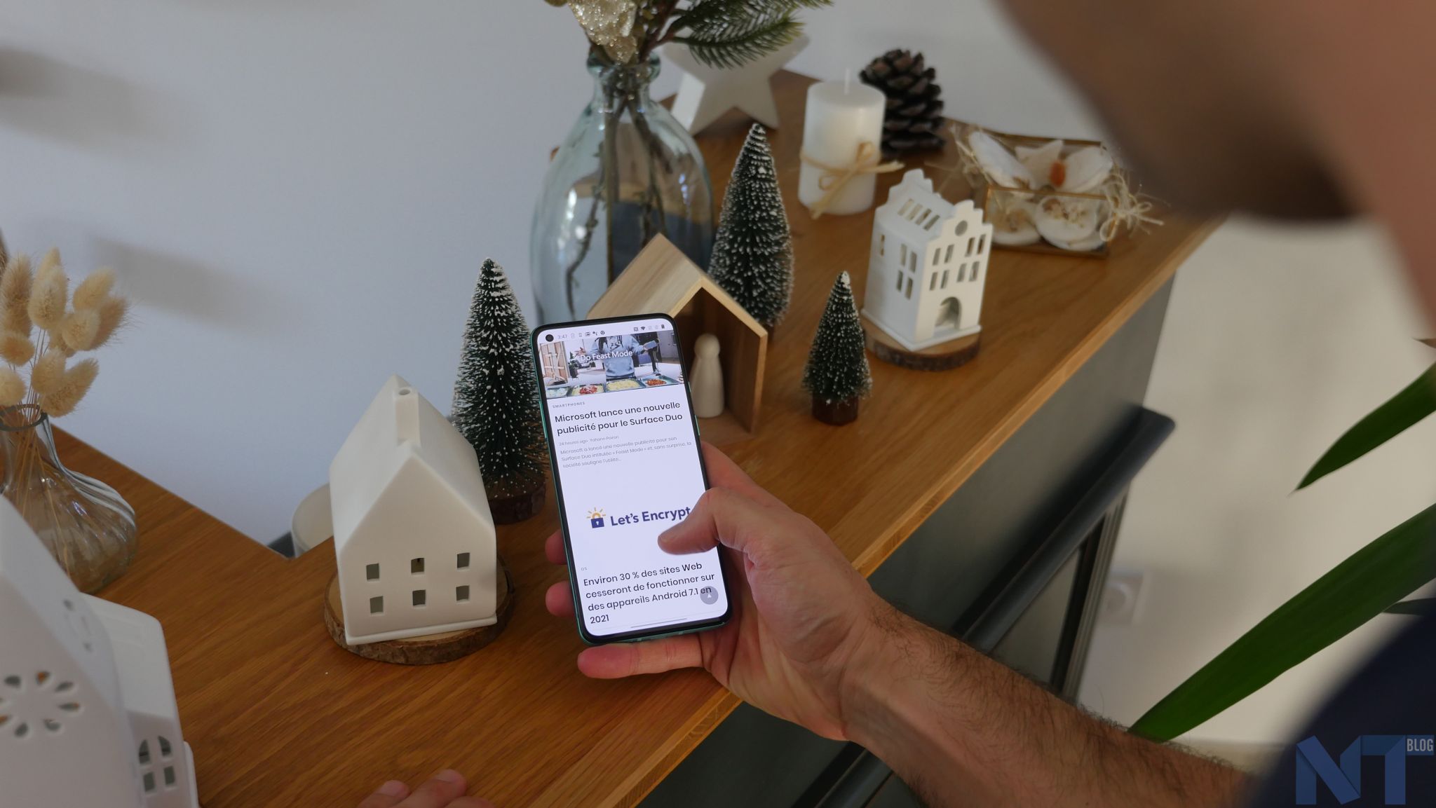 Comme sur les OnePlus 8 et 8T, l’unique caméra frontale est logée dans un trou dans le coin supérieur gauche de l’écran. Cela ne prend pas beaucoup de place et se trouve dans le coin du smartphone, donc c’est assez discret.