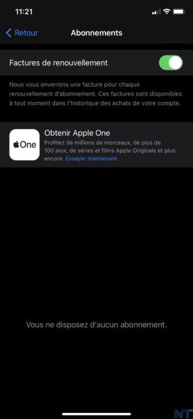 - L’App Store sera lancé. Une entrée apparaîtra pour Apple One. Cliquez dessus