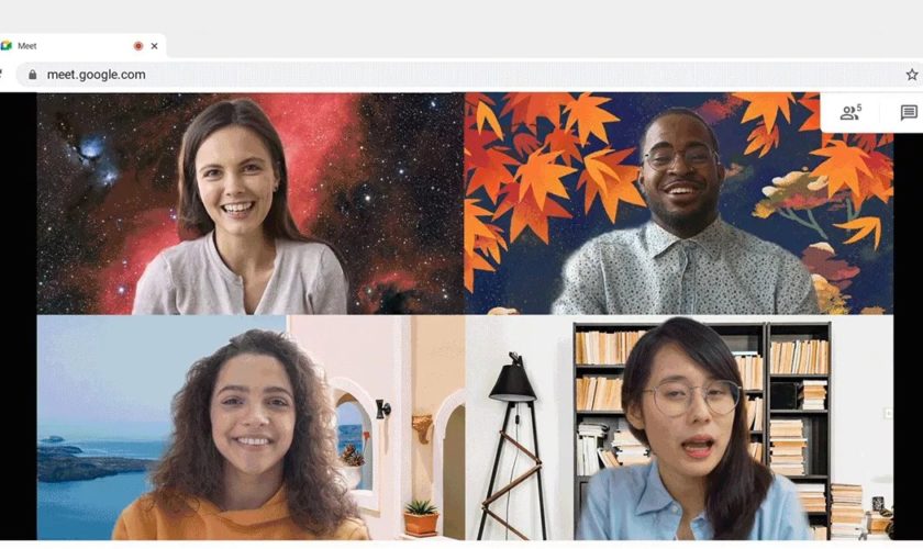 Comme annoncé en août, Google Meet obtient un support pour les arrière-plans personnalisés. Cette fonctionnalité offre l’ensemble d’images par défaut de Google, notamment des espaces de bureau, des paysages et des arrière-plans abstraits. Vous avez également la possibilité de télécharger votre propre image.