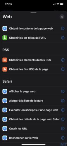 - Ensuite, cliquez sur « Web », puis descendez jusqu’à la liste « Safari » où vous devriez voir une entrée « Afficher la page Web ». Cliquez dessus