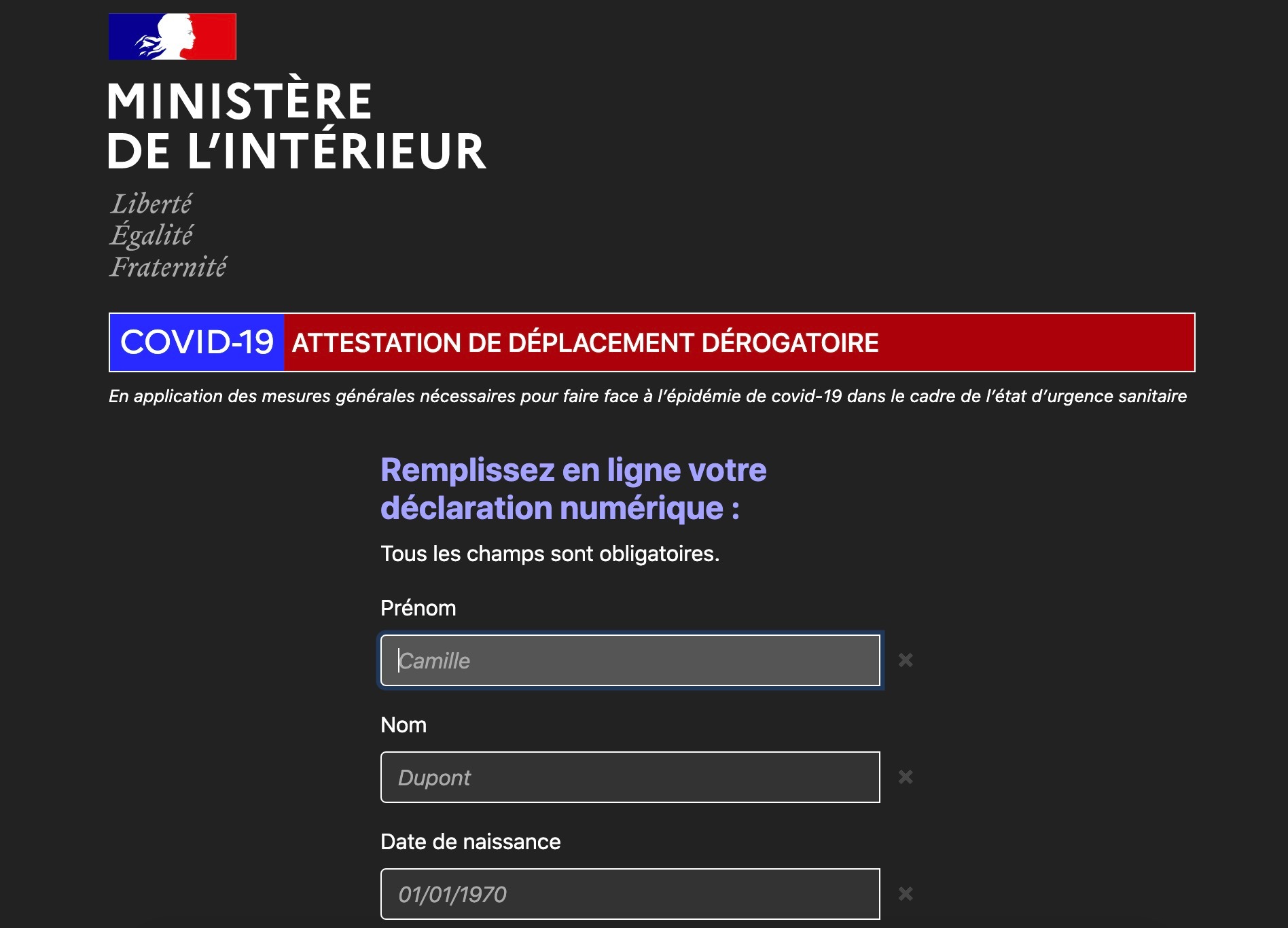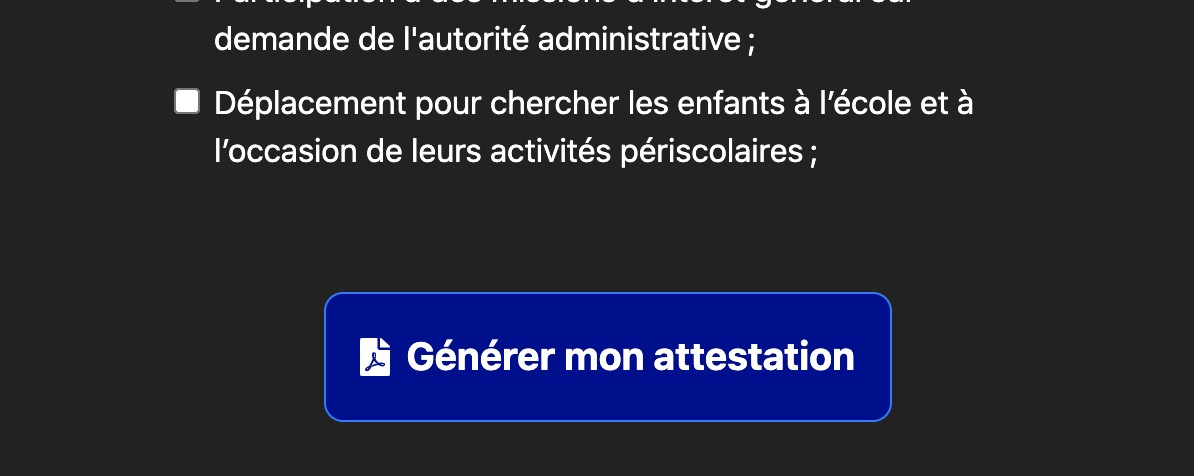 Bien évidemment, et comme indiqué ci-dessus, il faudra en régénérer une à chaque sortie étant donné que l’horodatage est rempli automatiquement lors de la génération d’une attestation de déplacement.