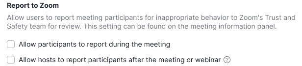 Il s’agit alors simplement de signaler le ou les utilisateurs concernés, qui seront alors retirés de la réunion — il sera demandé aux hôtes ou co-hôtes s’ils souhaitent signaler un utilisateur de leur réunion, partager des détails et éventuellement inclure une capture d’écran. L’équipe Confiance et sécurité de Zoom sera également informée.