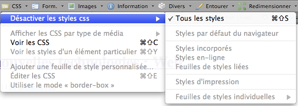 L’extension Web Developer ajoute un menu et une barre d’outils pour le navigateur avec divers outils de développement Web. Après avoir installé l’extension il y a une nouvelle entrée dans le menu contextuel du navigateur “Outils” intitulée “Web Developer”, ainsi qu’une nouvelle barre d’outils. Web Developer permet d’analyser tous les aspects d’une page web, les styles CSS, les images, les cookies, les formulaires et ainsi de suite. Avec cette extension, vous pouvez désactiver plusieurs éléments de la page pour voir comment votre site / application apparaît dans un navigateur dont JavaScript ou CSS est désactivé. Il permet également de redimensionner la fenêtre du navigateur à une résolution spécifique pour voir comment la page pourrait être vue par les utilisateurs ayant un appareil avec la résolution choisie.