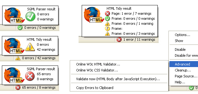 HTML Validator est une extension Mozilla qui ajoute la validation HTML dans Firefox. Il permet d’afficher le nombre d’erreurs d’une page HTML. Il est visible sous forme d’icône à droite de la barre de statut en bas de l’écran lorsque vous naviguez. (Il est très bien à côté de Firebug ;))