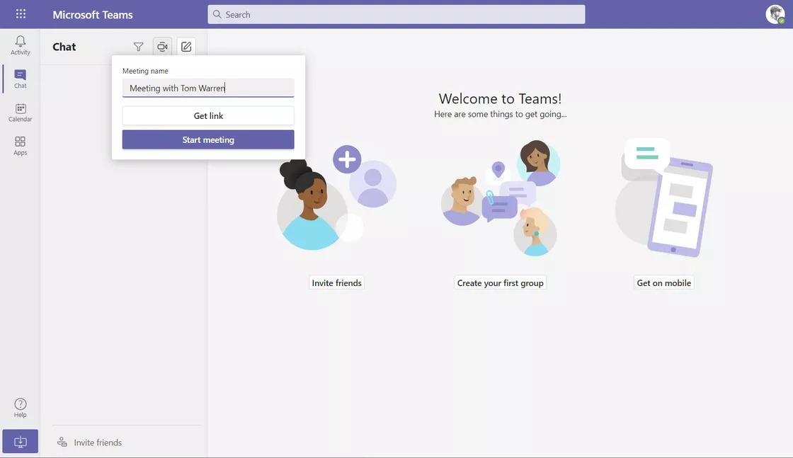 Pour commencer en tant qu’organisateur de réunions, il suffit de visiter le nouveau lien Web « Teams » de Microsoft et de se connecter avec un compte Microsoft. Une fois que vous avez créé une réunion vidéo, vous pouvez simplement partager le lien avec vos amis et votre famille, et ils pourront s’y joindre gratuitement depuis le Web sans avoir besoin d’un compte Microsoft.