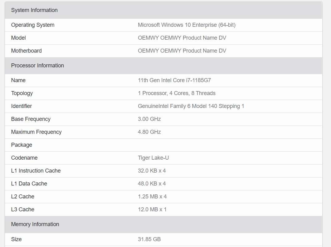 Il semblerait que la Surface Pro 8 fonctionnera sur le processeur Intel de dernière génération, l’appareil repéré sur GeekBench étant équipé du processeur Tiger Lake de 11e génération (i7-1185G7), et du support graphique Intel Xe.