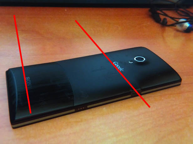 Sébastien (@_Swayb) vient de m’alerter sur le fait que le logo Google semble ne pas être placé dans la bonne perspective. “Debout, ce logo serait légèrement incliné”. En regardant la ligne directrice du logo Sony, et en la comparant à celle de Google, on peut voir que chaque logo part dans un sens différent. Plutôt qu’un long discours :
