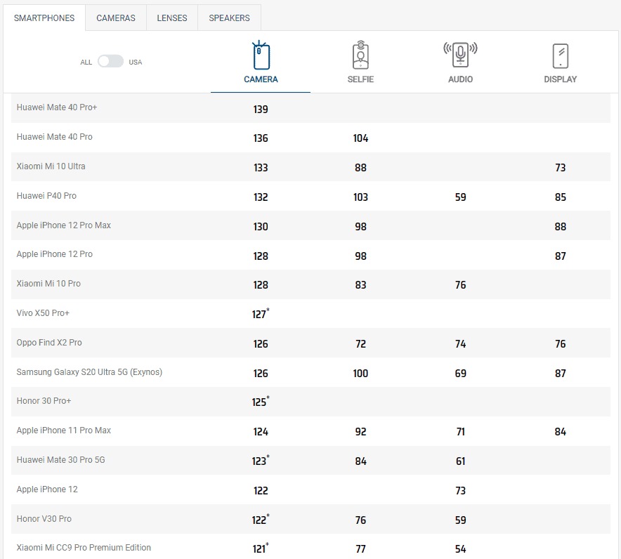 Quoi qu’il en soit, sur le plan de la photo, il devance le Huawei Mate 40 Pro (136), le Xiaomi Mi 10 Ultra (133), le Huawei P40 Pro (132) et l’iPhone 12 Pro Max (130).