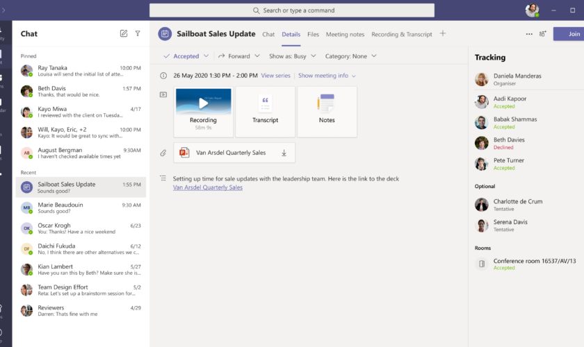 Le nouvel ajout permettra aux utilisateurs de Teams d’accéder aux enregistrements des réunions, aux messages de chat, aux notes et aux transcriptions à partir de l’onglet des réunions.