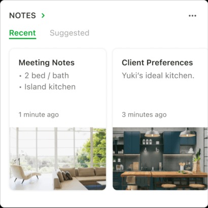 Alors que Notes permet aux utilisateurs d’accéder à leurs notes « Récentes » afin qu’ils puissent rapidement reprendre là où ils se sont arrêtés, ils peuvent également choisir des notes « Suggérées » pour permettre à l’IA d’Evernote de faire apparaître le contenu dont ils ont besoin. D’autre part, le Scratch Pad peut être utilisé pour prendre rapidement des notes directement depuis Evernote Home. Le widget « Récemment capturé » montre aux utilisateurs tous les contenus qu’ils ont enregistrés récemment, tels que des clips Web, des images, des documents, du son et des e-mails.