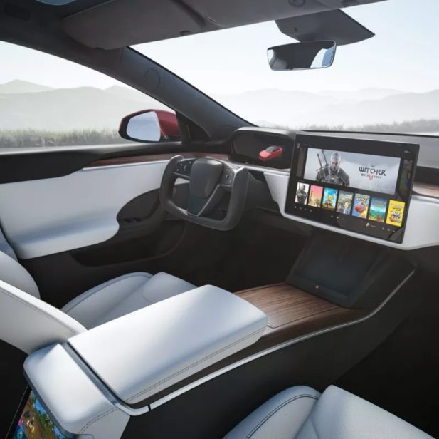 L’écran central de 17 pouces a maintenant une résolution de 2 200 x 1 300 pixels, et peut être incliné de gauche à droite en fonction des besoins de visibilité. Selon Tesla, le traitement embarqué permet d’obtenir jusqu’à 10 téraflops de puissance, qui peuvent être utilisés pour les jeux en voiture. Les contrôleurs sans fil seront également pris en charge.
