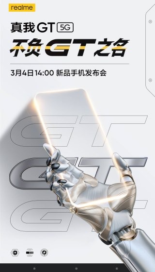 Le géant chinois est allé sur Weibo pour annoncer la date de lancement. Vous pouvez voir l’affiche du realme GT 5G ci-dessous. Elle ne révèle pas grand-chose sur le nouveau vaisseau amiral. Cependant, vous avez trois petites icônes en bas à gauche de l’affiche. Elles représentent les trois principales nouveautés — Snapdragon 888, écran AMOLED en 160 Hz et recharge en 125 W.
