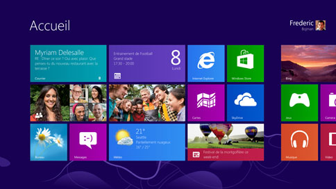 Le changement le plus évident est le nouveau menu démarrer. En effet, dès lors que vous allez lancer votre ordinateur, Windows 8 va désormais vous présenter un écran avec des blocs multicolores appelés “Live Tiles” qui présentent l’ensemble de votre contenu et au centre. Toutes vos musiques, vidéos, photos, jeux et plus encore sont facilement accessibles pour votre consommation.