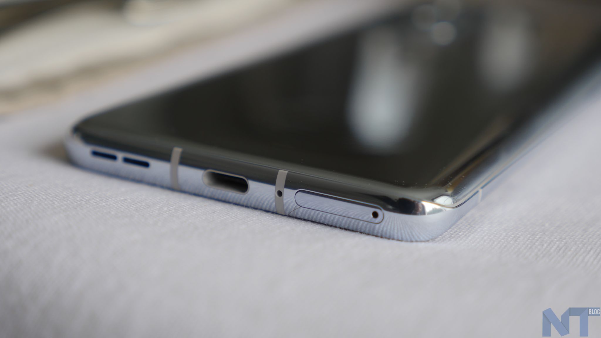 À l’arrière, nous avons un gros bloc de caméra mais acceptable avec un logo « Hasselblad ». Il y a également un moteur haptique amélioré, qui offre un excellent retour de vibration. Le bord inférieur du smartphone loge l’emplacement de charge USB-C, ainsi que le tiroir pour carte SIM et une grille de haut-parleur.