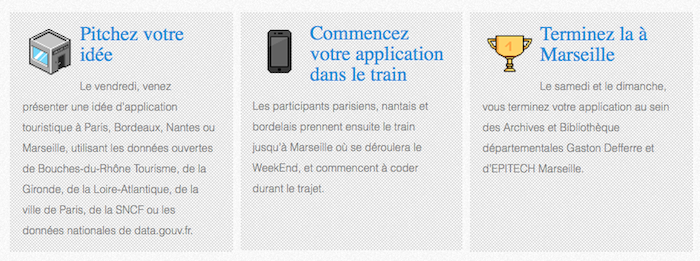 Une fois sur la terre Marseillaise, vous devrez vous dirigez vers les Archives et Bibliothèque départementales Gaston Defferre. C’est là, ainsi qu’à Epitech Marseille, que les équipes développeront leurs applications autour du tourisme. Comme mentionné ci-dessus, l’open data, un sujet vraiment d’actualité, sera au cœur du weekend ! Pour vous aider dans vos tâches de développement, vous allez avoir accès aux données des départements de la Loire-Atlantique, de la Gironde et des Bouches-du-Rhône. Outre, les données ouvertes de ces départements, la SNCF mettre également à disposition des données ouvertes, dont certaines seront libérées spécialement pour l’évènement.