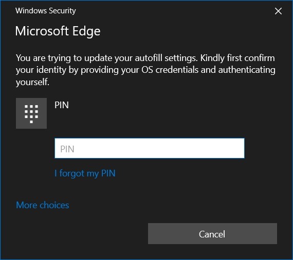 Lorsque Windows Hello est activé, les utilisateurs de Edge verront une invite de sécurité apparaître chaque fois qu’ils essaieront d’utiliser l’un de leurs mots de passe enregistrés dans le navigateur. Ils devront alors s’authentifier à l’aide d’un code PIN, d’une empreinte digitale ou d’un scan de l’iris pour que Edge renseigne automatiquement le nom d’utilisateur et le mot de passe de leurs comptes en ligne.