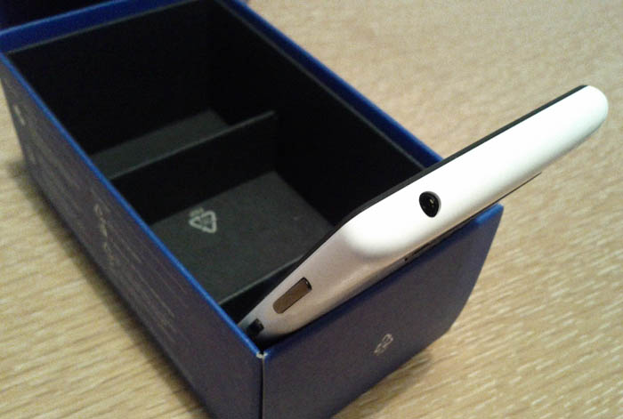 Sur le haut du Lumia 820 vous trouverez une prise audio jack de 3,5 mm, afin que vous puissiez profiter au maximum du support du système Dolby Headphone, qui permet avec un casque stéréophonique de simuler le son d’un ensemble de reproduction de son surround à cinq haut-parleurs, tandis que le port Micro-USB est maintenant disponible sur la tranche du dessous du téléphone. Vous aurez besoin d’enlever la coque et de retirer la batterie pour insérer la carte Micro SIM, et de possiblement y insérer également une carte Micro SD dans un slot dédié.